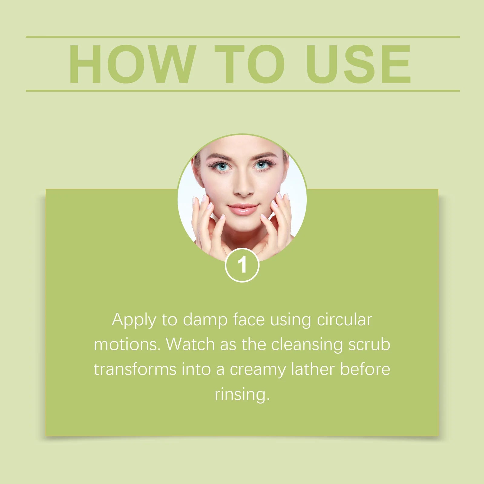 Apply to damp face using circular motions. Watch as the cleansing scrub transforms into a creamy lather before rinsing.